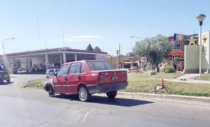 Se trata de un vehículo Fiat Duna que por ausencia de una de sus ruedas delanteras quedó varado sobre ruta 22.