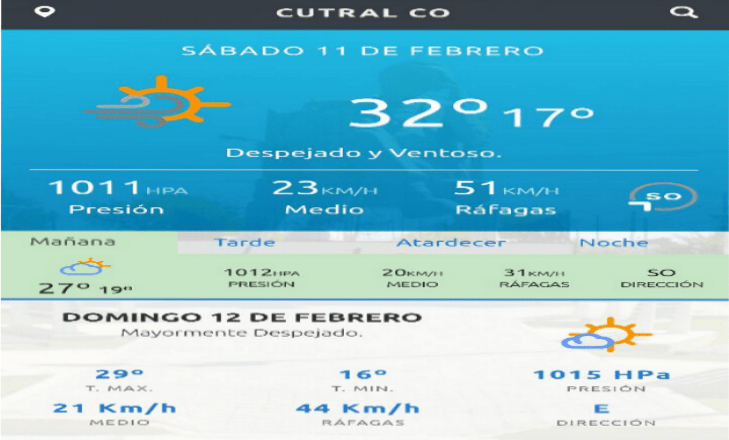 El pronóstico del tiempo que desde la Autoridad Interjurisdiccional de Cuencas se anuncia para hoy marca una temperatura máxima de 32 grados, con viento que irá desde los 9 kilómetros hasta los 35 kilómetros para el atardecer.