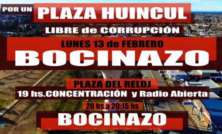 “La ciudad se encuentra destruida, abandonada y sucia, nos están saqueando nuestros recursos, no hay obra pública, los servicios son un desastre y además tenemos que soportar que nos roben como si nada” reza el evento que comenzó a circular ayer por Facebook bajo el nombre “Bocinazo contra la Corrupción en Plaza Huincul”, luego de que se conociera que el TSJ permitiera a Giannattasio continuar en la intendencia de manera precautelar.