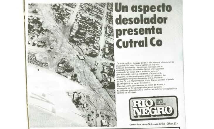 En tanto el diario Río Negro publicaba que “numerosas viviendas que se levantaban junto al cañadón fueron prácticamente arrancadas de cuajo por el violento torrente que descendió sobre la población”.