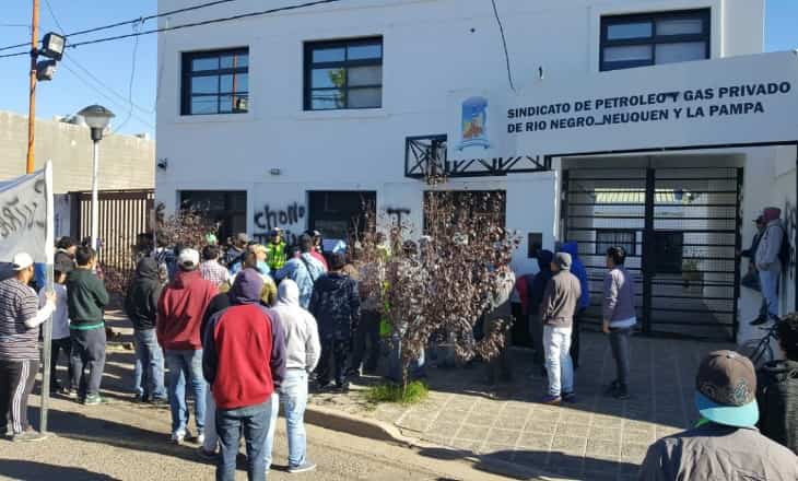 Una columna de desocupados enrolados en Uocra y de trabajadores despedidos de empresas petroleras salió desde la sede que el gremio de la construcción tiene en Avenida Del Trabajo y Alberdi y marcharon hasta la filial del sindicato petrolero en la calle Sarmiento.