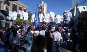 Fue muy numerosa la columna de maestros que salieron desde el monumento al General San Martín y se dirigieron hacia la sede del ISSN. La actividad concluyó con un acto en Casa de Gobierno.
