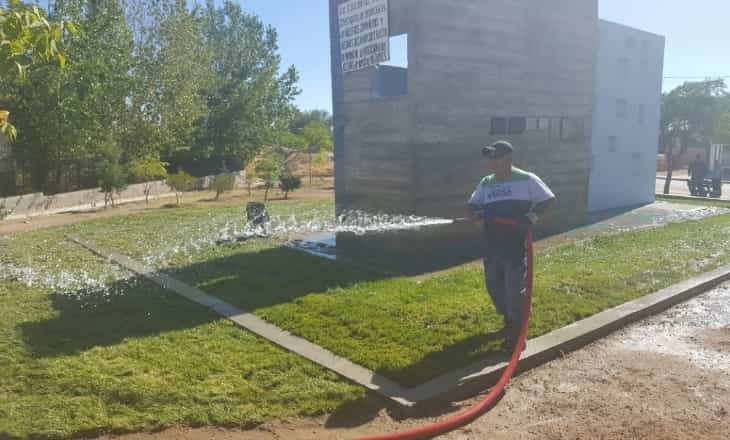 iluminación, propia del sello de los demás espacios públicos en Cutral Co. Por eso avanzan las tareas de electricidad e instalación de farolas, además de la colocación de alfombras de césped, veredas y nuevos bancos.
