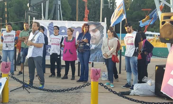Con el secretario general del gremio docente ATEN, Marcelo Guagliardo, como principal orador, los docentes recordaron en la torre los once años del desalojo de la refinería a manos de los supuestos “cascos amarillos”.