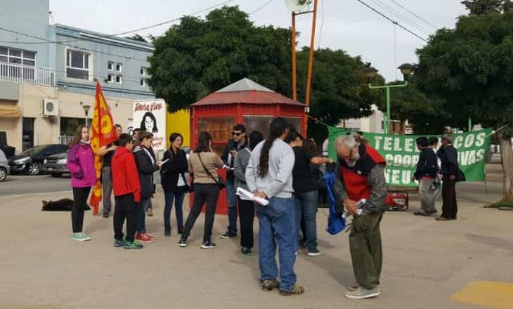 Los trabajadores de los gremios docente ATEN, Telefónicos y los militantes del Partido Obrero se concentran en Roca y Carlos H. Rodríguez en Cutral Co.