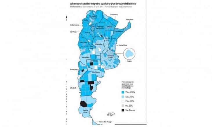 Aunque las estadísticas no parecen ser muy buenas, en el resto del país son peores. Soalmente están mejor en la ciudad de Buenos Aires, la provincia de Buenos Aires y Córdoba. El nivel de alumnos con menos conocimientos que el básico necesario es cerca del 30% de todo el país.