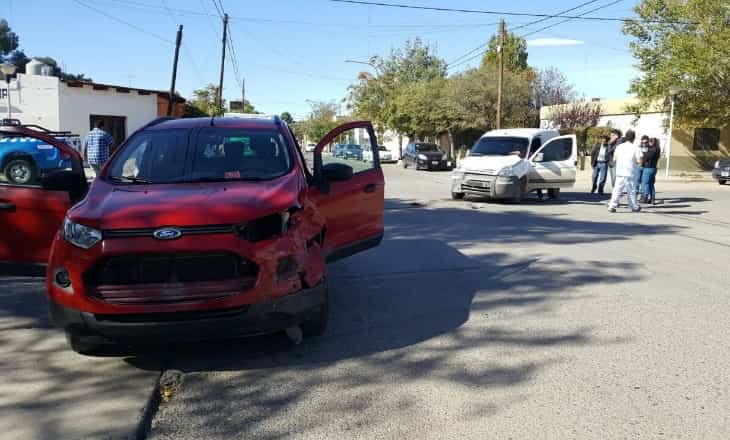 Dos rodados quedaron con importantes daños materiales, después del impacto. Se trata de una camioneta tipo utilitario Citröen de color blanco y una EcoSport roja.