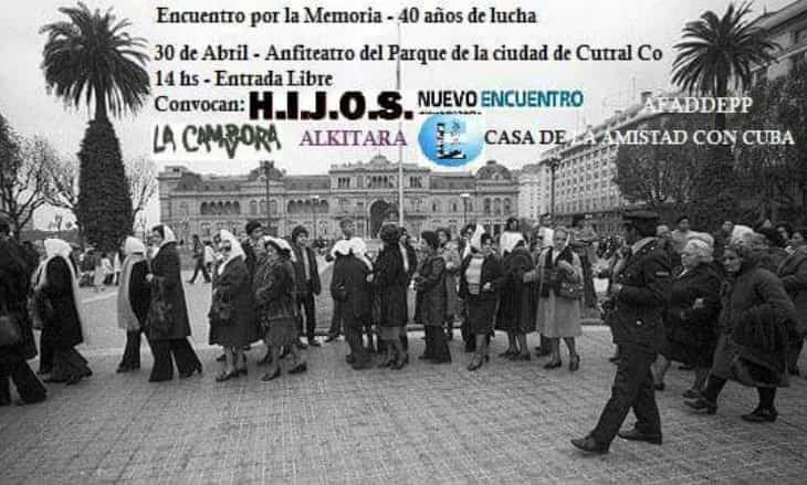Será el domingo 30 de abril, cuando se cumplan los 40 años de la primera ronda que la organización Madres concretó en la capital federal. En Cutral Co habrá una actividad en el Parque de la Ciudad.