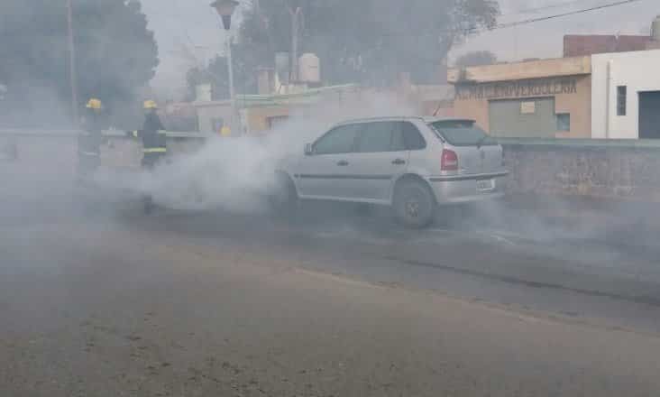 Un aparente desperfecto eléctrico originó las llamas en el motor de un Volkswagen mientras ascendía por el puente de calle Eguinoa. Vecinos asistieron con extintores y bomberos finalizaron la tarea.