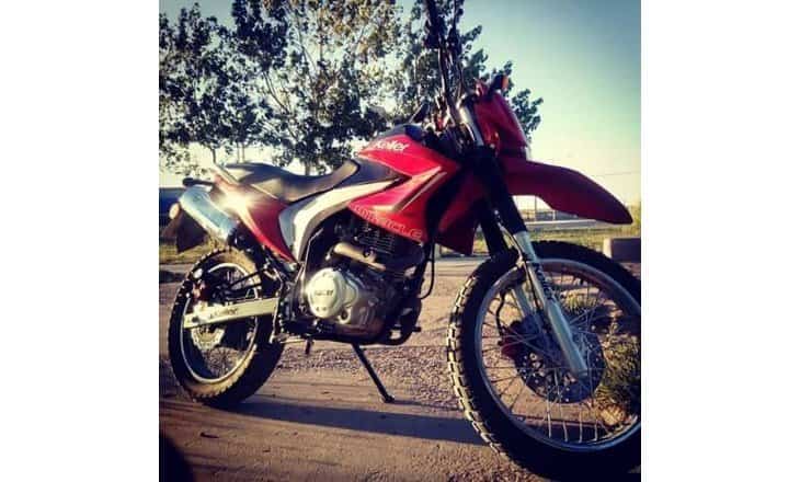 La moto, que se ve en la fotografía, es una Keller 200cc, color rojo. Este último dato pudo ser modificado, en caso de ver una motocicleta similar se pide que den el alerta.
