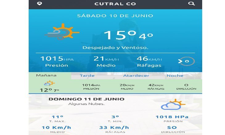 Para el domingo, el viento se presentará del sector sudoeste con una velocidad máxima de 12 kilómetros y las ráfagas llegarán a los 33 kilómetros por hora.