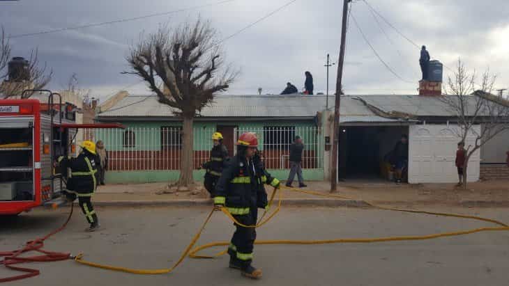 El siniestro se inició en una vivienda de la calle Calfulcurá -al 1.200 de Carlos H Rodríguez- y los bomberos voluntarios se encuentran en el lugar trabajando.