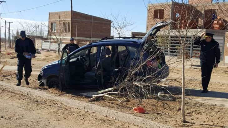 Tres hombres y una mujer fueron demorados tras una persecución que terminó en Benito Pérez de Plaza Huincul, cuando el auto de los demorados impactó contra un árbol.