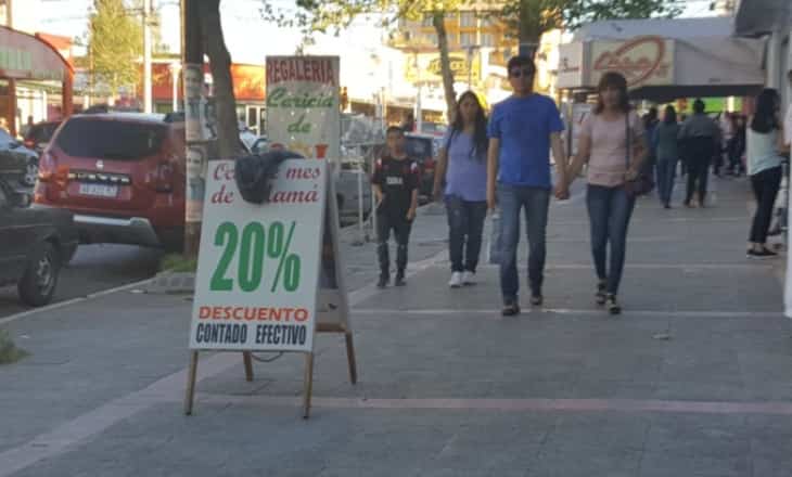 Los comerciantes exhiben en sus vidrieras algunos carteles que invitan a comprar con promociones o algunos descuentos, según los medios de pago.