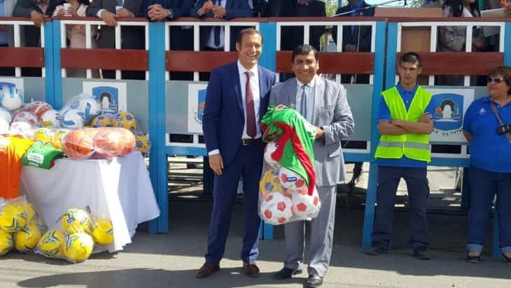 Gutiérrez exhibió la botella ante el público frente al palco y la regresó a su caja de presentación. Entre los demás presentes, el mandatario provincial repartió balones y otros elementos para instituciones deportivas de la ciudad. Mirá las fotos en Facebook