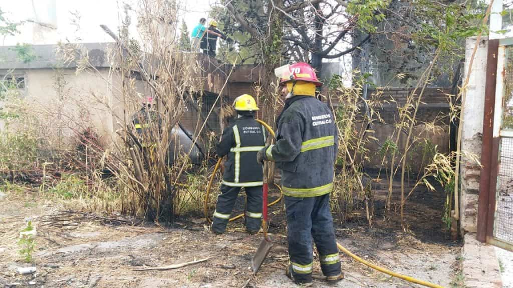 Dos dotaciones de bomberos trabajaron en el lugar para sofocar el incendio que afectó el ingreso a los talleres, en la esquina de La Pampa e Yrigoyen. En primera instancia afectó a un pino de grandes dimensiones y otras plantas secas del sector, pero luego las llamas tomaron parte del edificio y se expandieron sobre el techo de las oficinas administrativas.