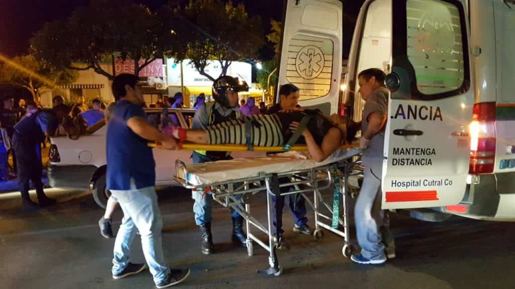 El primero en frenar fue un Renault Clío, que fue impactado de atrás por el Renault 19 mientras que el Chevrolet Corsa que venía atrás chocó a ambos. Como suele ocurrir en estos casos, el auto que estaba en el medio se llevó la peor parte. La mujer que iba como acompañante no tenía el cinturón de seguridad puesto y por ello chocó su cabeza con el parabrisas. Perdió el conocimiento y fue trasladada al hospital zonal en ambulancia.
