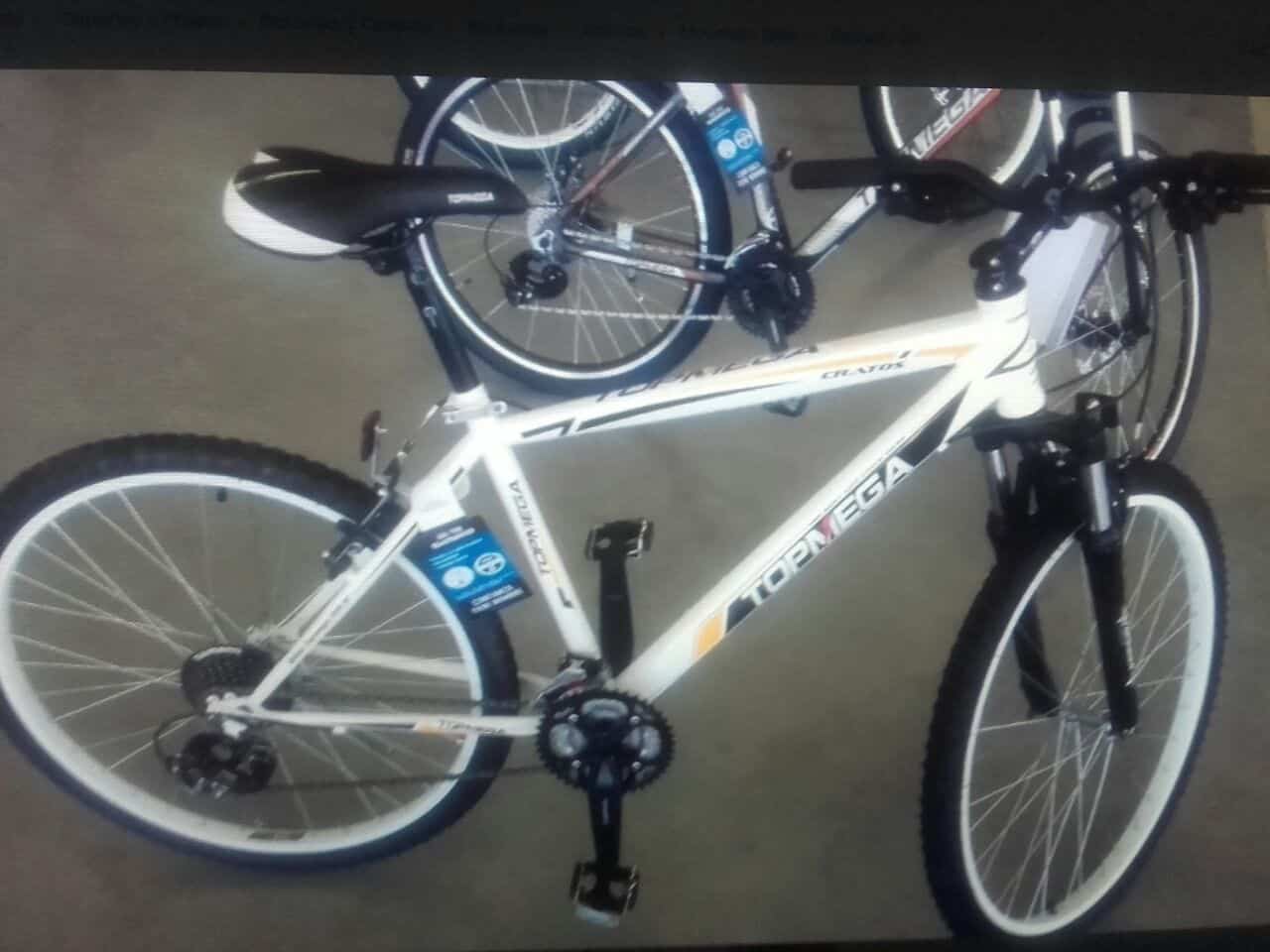 Se trata de una bicicleta blanca, rodado 26 y marca Top Mega.