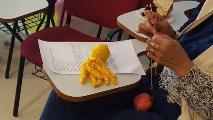 Basado en estudios en Dinamarca, los pulpitos son “acompañantes” de bebés prematuros con un alto grado de estimulación para optimizar su proceso. “Según las estadísticas, se sienten más seguros con el pulpito como acompañante” explicaron. Claudia Esperón agregó que “el único requisito es saber tejer a crochet, la técnica se llama amigurumi, se usan únicamente dos puntos básicos”.