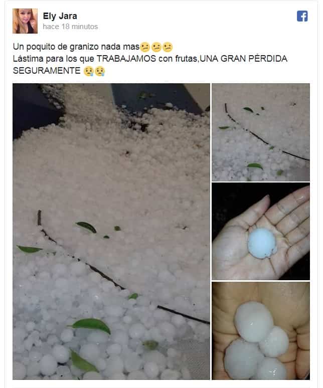 Según publicó una vecina de Allen, Ely Jara, el granizo de mayor tamaño cayó en esa localidad rionegrina, a pocos kilómetros de Cipolletti.