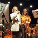 Además, le entregó al director de la orquesta, Marcelo Chevalier, una plaqueta en la que se reconoce la labor por ser beneficiarios desde 2005 del concierto el “Regalo de los Chicos”.