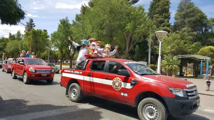 Esta tarde, los voluntarios atendieron el llamado de Papá Noel que les pidió ayuda para recorrer las calles de la ciudad. Los bomberos también llevaron a los tres Reyes Magos.