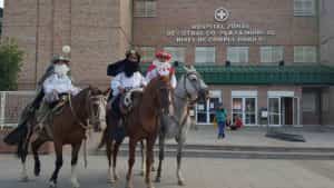 Luego, Melchor, Gaspar y Baltazar, montaron a sus caballos y regresaron hacia Plaza Huincul. Antes de llegar al nosocomio, estuvieron en Mosconi y parte de Centenario. El destino sería Universitario y barrio Otaño, para concluir en la “U”. Los Reyes Magos contaron con a ayuda de los integrantes de la agrupación gaucha Nuestra señora San Juan de Los Lagos.