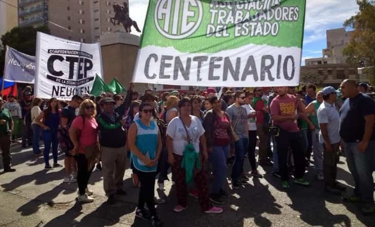 Afiliados a gremios estatales nacionales, provinciales y municipales engrosan las columnas de protesta en el centro de la capital de Neuquen. Las organizaciones aseguran que unas cinco mil personas participaron de la protesta.