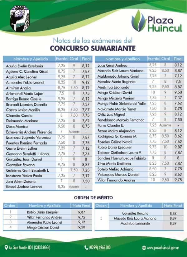 Desde el propio juzgado de Faltas, se indicó cuáles fueron las notas finales del concurso para el cargo de sumariante en Huincul.