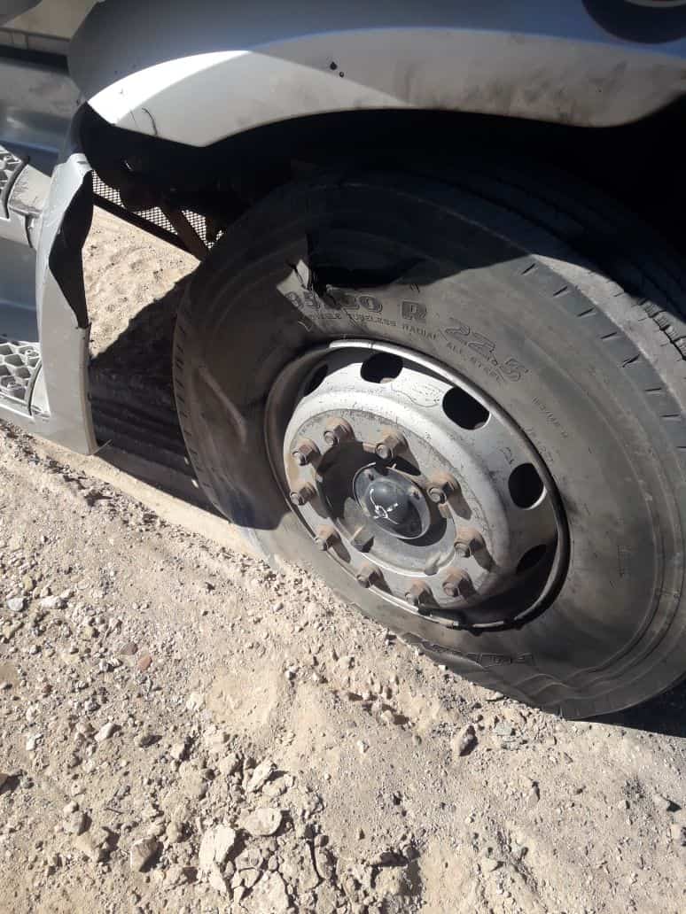 La rotura del cable generó un gran arco eléctrico que descargó en los neumáticos y generó explosiones en los neumáticos. Esa explosión alertó a otros vehículos que transitaban por la ruta y se detuvieron para auxiliar al chofer, que recibió la descarga dentro de la cabina y se encontraba malherido.