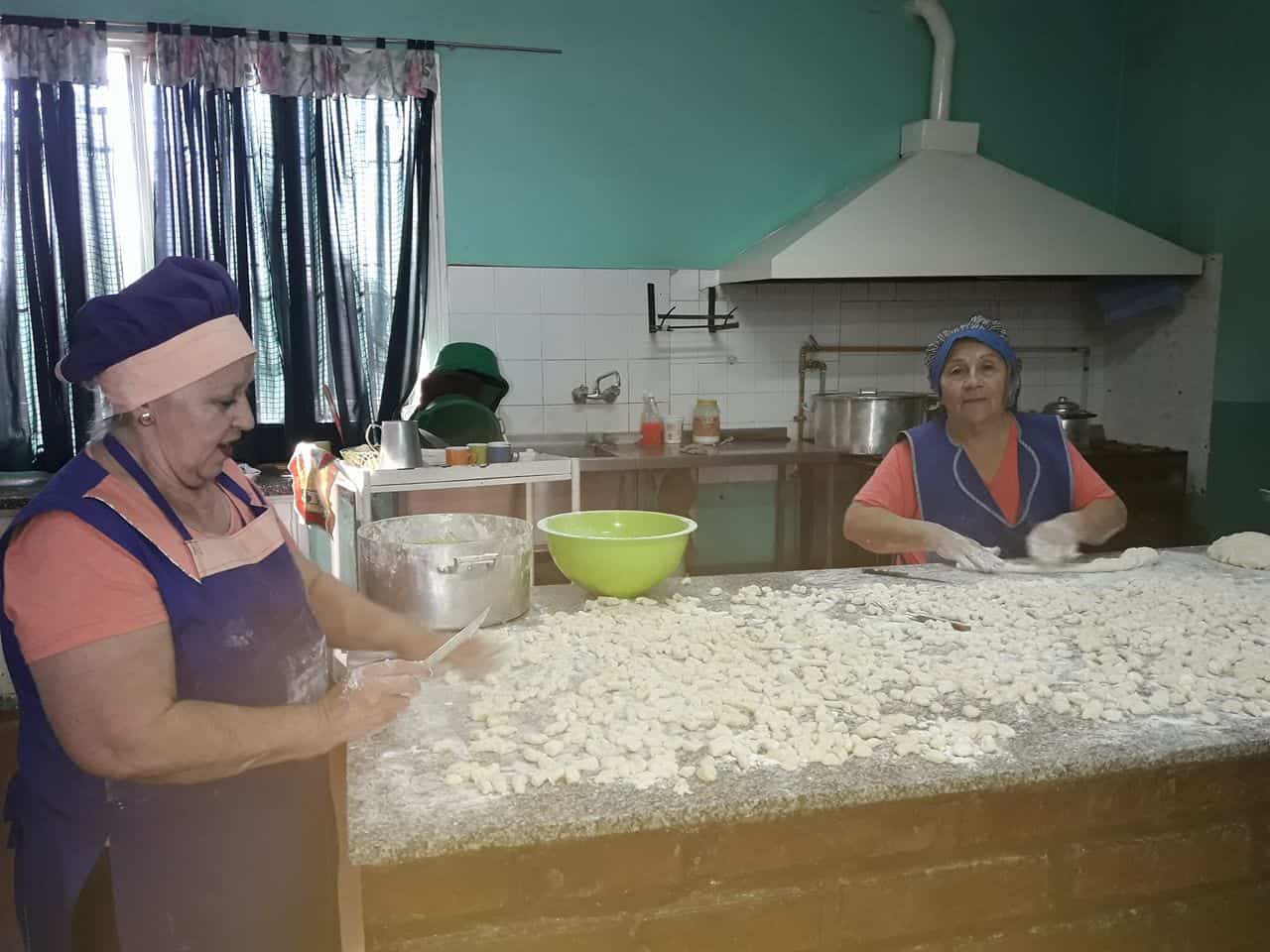 Las “porteras” de la escuela 45 esta semana cocinaron ñoquis caseros para los niños.