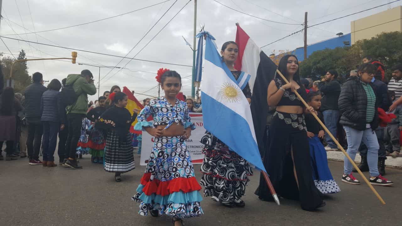 Cabe recordar que las instituciones desfilaron inmediatamente después de la entonación de los himnos, porque no hubo discursos desde el palco, como tradicionalmente se hace cada año.