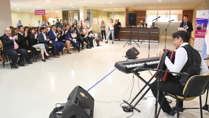El evento contó con la presentación del joven músico de Traful Santiago Fonseca, quien interpretó las obras “Divenire” en piano y “Quiero ser tu sombra” en bandoneón; instrumento con el que recorrió las instalaciones de la Legislatura llevando música a cada rincón de la ‘Casa de Todos’.