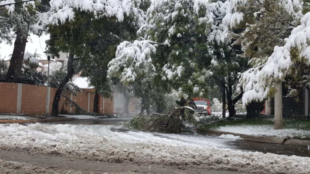 La caída de carteles y grandes gajos de árboles por el peso de la nieve empezaron a sumar problemas.