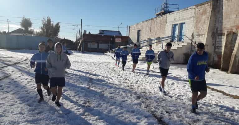 Lejos de quedarse encerrados, los Gallitos entrenaron en la cancha auxiliar del club que está cubierta de nieve.