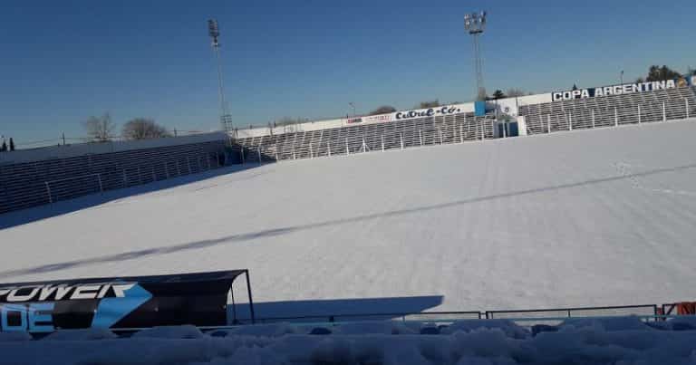 El año pasado fueron las heladas y ahora la nieve quienes castigaron al suelo que alberga los partidos de Copa Argentina en la provincia. El clima neuquino no lo ayuda.