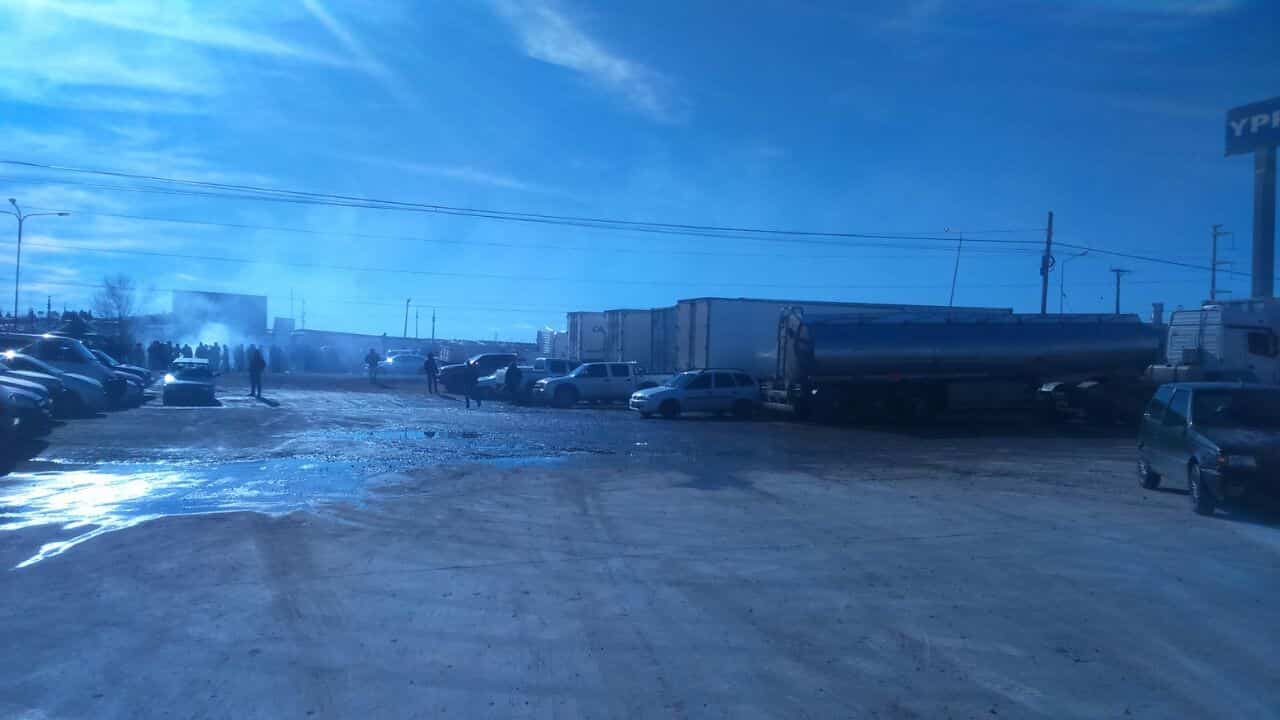 Si bien no se bloqueó el acceso en ningún momento, si se pararon los vehículos de tranporte de diferentes tipo de cargas, en el ingreso a Plaza Huincul.