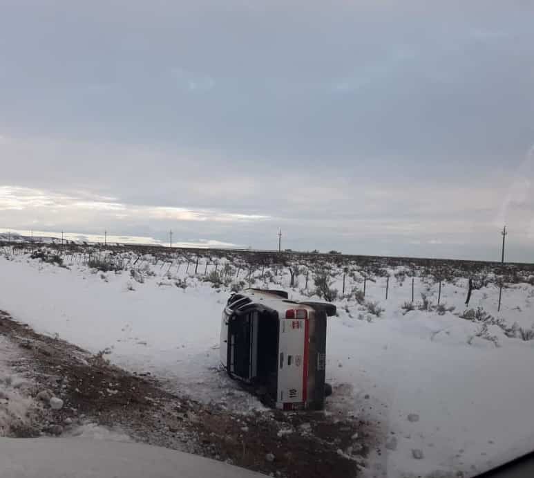 Esta mañana, a unos diez kilómetros de Cutral Co, en dirección oeste, volcó sobre su marcha un vehículo de la empresa IBC en la que iban trabajadores y que por fortuna, se encuentran en buen estado, más allá de los golpes.