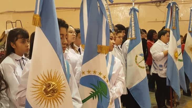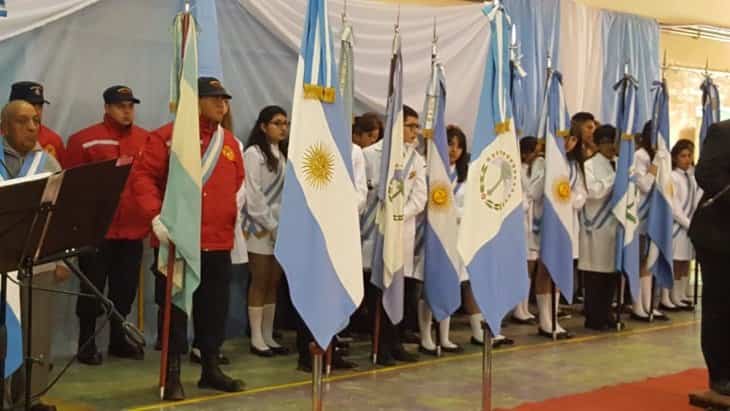 Las banderas de ceremonia de las escuelas primarias, secundarias, terciarias y de las instituciones intermedias, participaron esta mañana del acto para recordar los 198 años de su fallecimiento.
