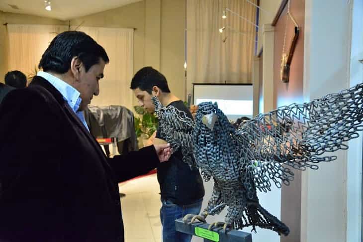 El artista Ezequiel Zapata, comentó que la idea era “venir y mostrar algo nuevo”. Dijo que muchos de los elementos utilizados en sus obras son rezagos, materiales en desuso, que fueron transformados, “les di una vuelta de tuerca y logré darles vida; una que para mí tienen; yo miro las piezas” y ellas le dicen lo que quieren ser.