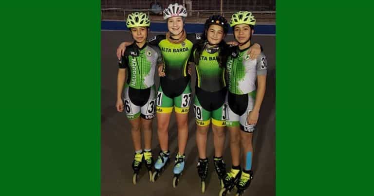Las patinadoras son Martina Cettour, Sheila Querci de Alta Barda y Martina y Jazmina Busto (Las Mellis) que arrancaron patinando para Flash de Cutral Co y ahora representan a Alta Barda.