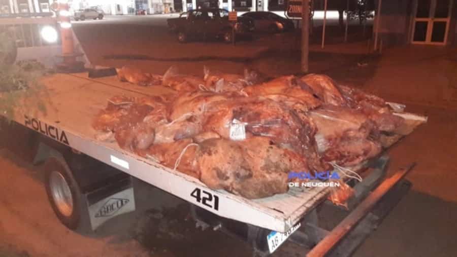 La Renault Máster no contaba con el sistema de refrigeración que la Ley exige para el traslado de este tipo de alimentos, sumado a que tampoco llevaba una guía ni documentación de la carne, por ello resultó el decomiso de 1.800 kilogramos de carne, entre costillares y pulpas, envueltos en bolsas de nylon.