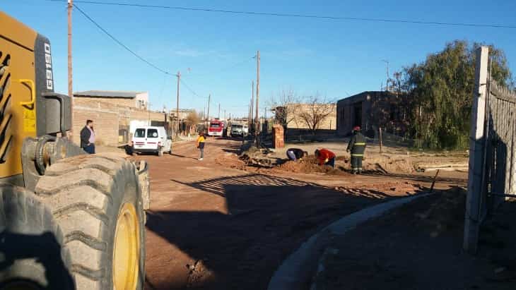 Ocurrió está mañana en la esquina de Laguna Salada y Laguna Rincón de Cutral Co. En el barrio Parque Este avanza la obra de pavimentación y la rotura ocurrió mientras trabajaban sobre la esquina noroeste para diseñar el cordón cuneta.