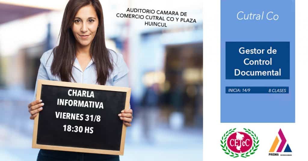 En el mes de Septiembre comenzará a dictarse un curso de Gestor de control documental en las instalaciones de CETeC Cutral Co