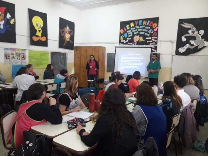 Un equipo del hospital de Complejidad Media fue el encargado de brindar la formación para las y los docentes de esta escuela primaria de Plaza Huincul.