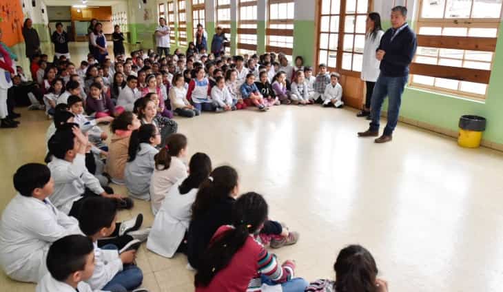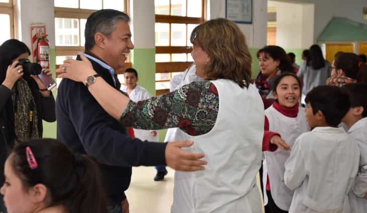 La visita se dio en el marco de una recorrida de trabajo por las localidades de Junín y San Martín de los Andes, donde visitó la institución educativa que ya cuenta con 117 años de vida. “Es una escuela que encierra muchos años y etapas de crecimiento de este país y San Martín de los Andes. Hay hasta quinta generación de chicos que asisten de a la escuela como lo han hecho sus antepasados”, destacó el mandatario quien entregó material informático y comprometió un aporte de la Legislatura para adquirir equipamiento para la cocina donde almuerzan los alumnos. En la actualidad asisten 580 chicos en dos turnos, quienes los días de lluvia y frío realizan las clases de educación física en los pasillos, afectando el normal funcionamiento de la institución.