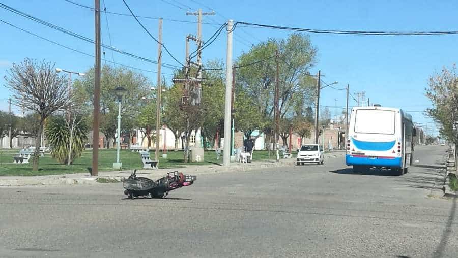 La motocicleta, de baja cilindrada, sufrió daños en la rueda delantera. En el lugar del accidente quedó también el casco. La ambulancia del hospital trasladó a el conductor hacia la guardia, donde fue atendido.