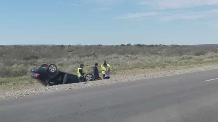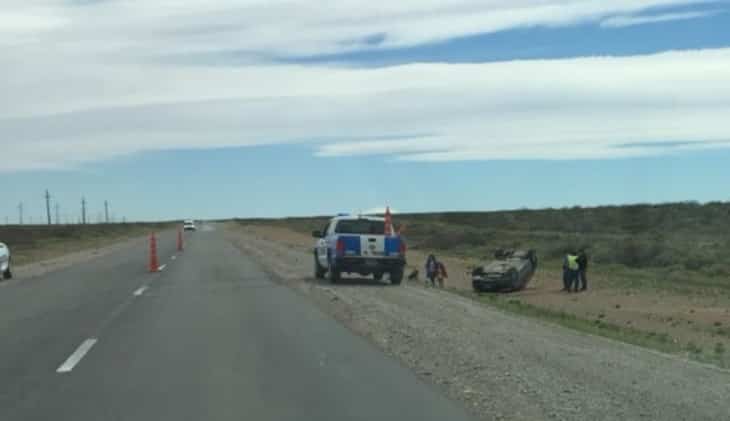 Un vehículo marca Volkswagen quedó detenido sobre la banquina norte de la vía nacional y con el techo apoyado sobre el suelo. Se desconoce por el momento, si hubo personas lesionadas.