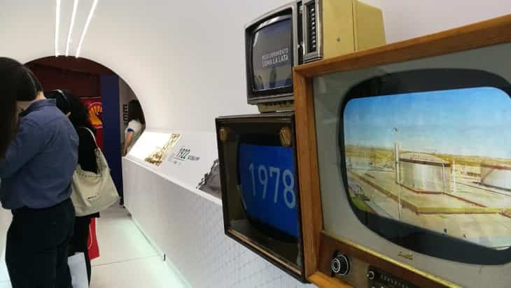 Dentro de la estructura se puede escuchar un audio en el que se menciona el descubrimiento del petróleo, la creación de YPF y la gestión del primer presidente de la empresa, Enrique Mosconi.