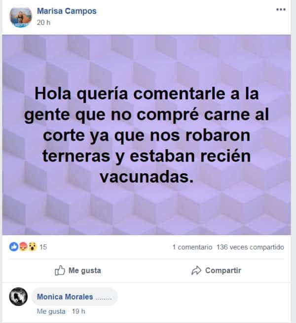 La familia usó las redes sociales para advertir que no compren carne al corte, ya que los animales estaban recién vacunados y su consumo sería riesgoso.